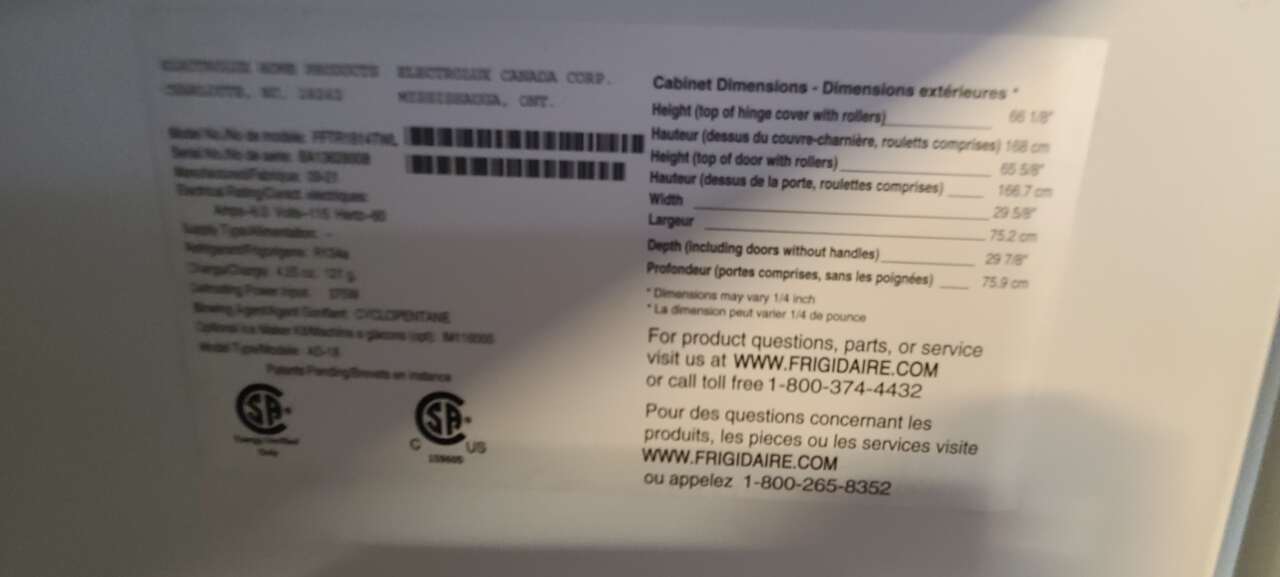 18 cu ft White Frigidaire Top Mount Freezer Refrigerator