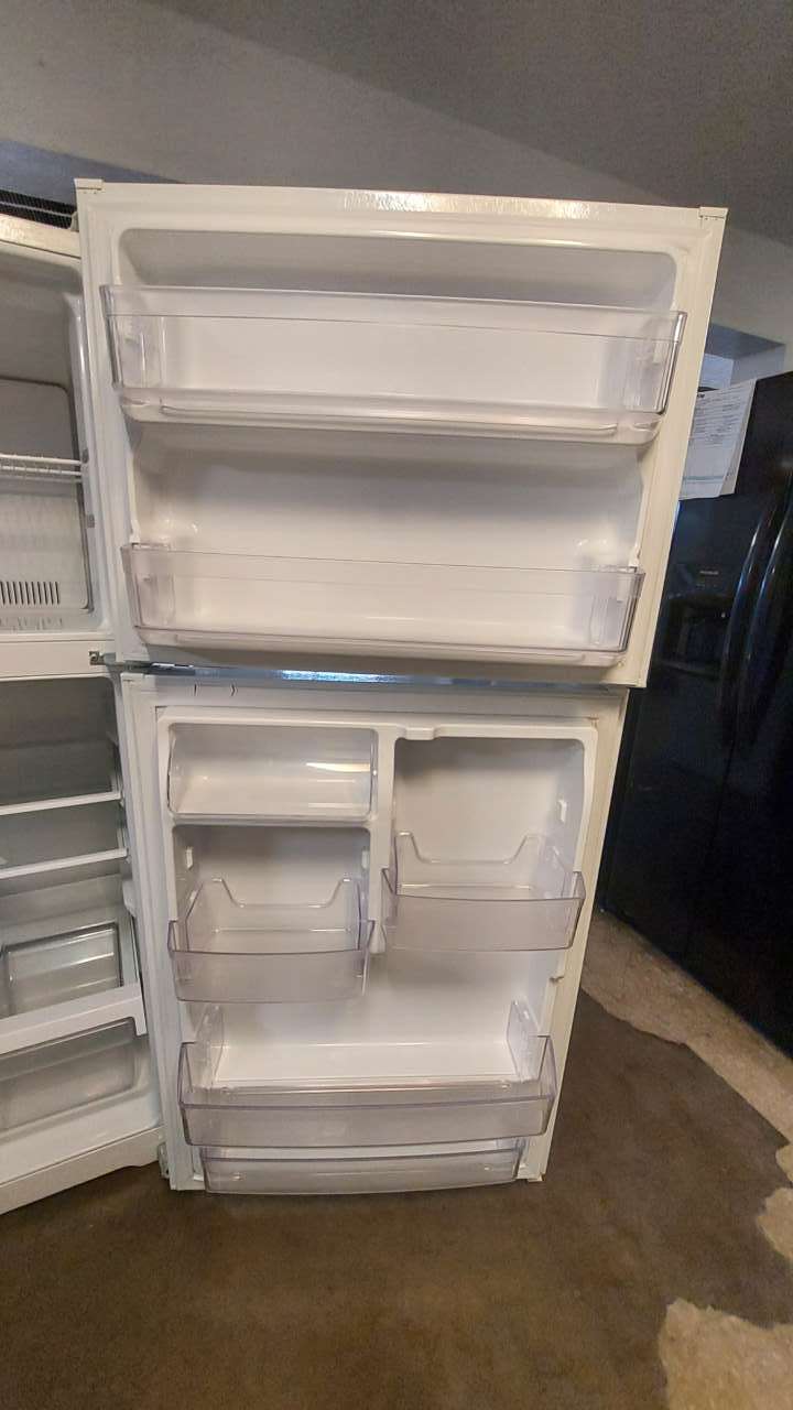 This unit has been cleaned inside and out and is ready to be delivered to your home. Inside the refrigerator is tempered glass shelving, gallon beverage door holders, regular door amenities, 2 regular crisper drawers and refrigerator/freezer temperature control. Inside the freezer are regular door amenities and a rack shelf. This unit comes with a 90 day parts and labor warranty. We accept cash, credit, debit cards and ACIMA no credit payment plan options. We hope to see you in soon!