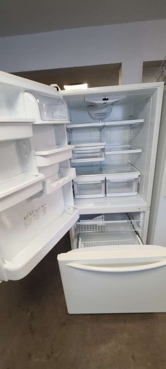This unit has been tested and works. It has been cleaned inside and out and is ready to be delivered to your home. Inside the refrigerator are adjustable spill proof tempered glass shelving, 2 humidity controlled crisper drawers, a deli drawer, regular door amenities, gallon beverage door holders and the refrigerator temperature controls. Inside the freezer is a pullout freezer rack shelf, a bottom freezer rack drawer and a removable ice bucket. This unit comes with a 90-day parts and labor warranty. This is from a 5-star business. If interested message me or come on into 5815 Lomas Boulevard Northeast. We accept cash, credit, debit cards and ACIMA no credit payment plan options. We hope to see you soon!