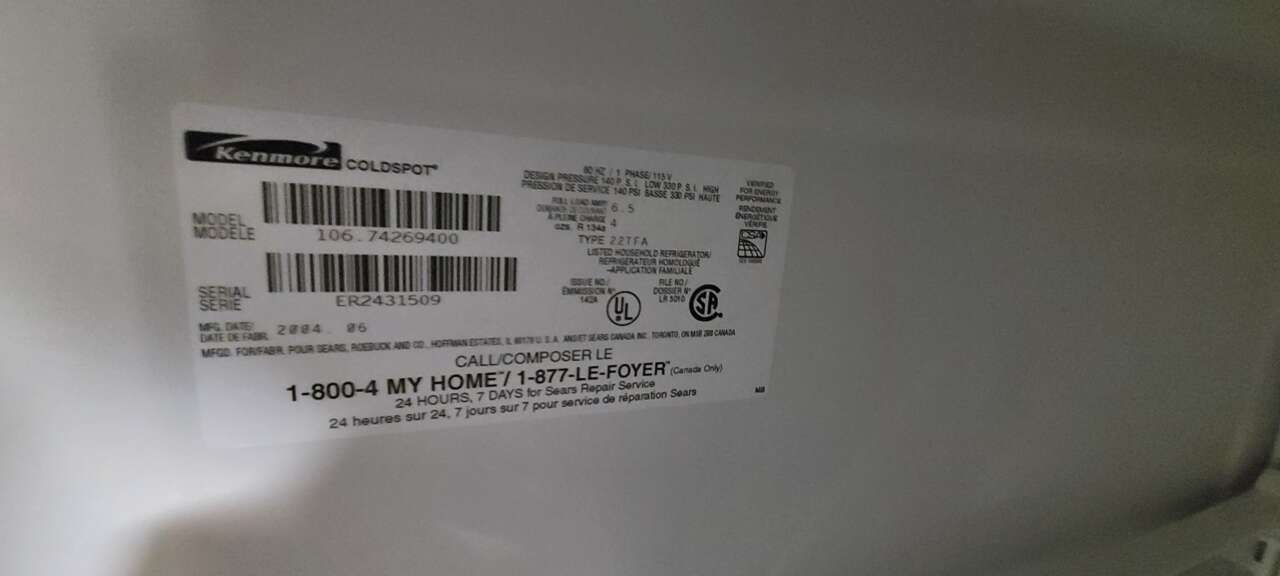 22 cu ft Black Kenmore Top Mount Freezer Refrigerator w/Ice Maker