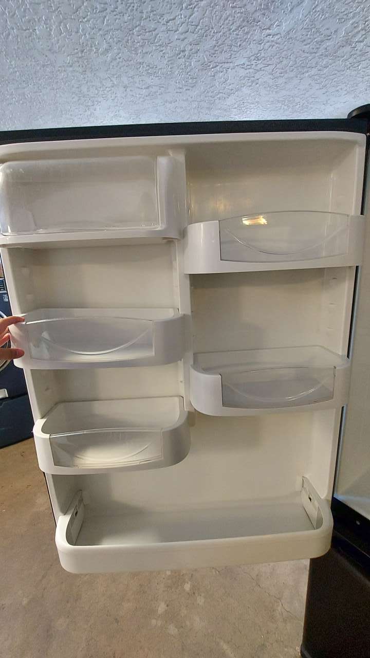 This unit has been tested and works. It has been cleaned inside and out and is ready to be delivered to your home. Inside the refrigerator are adjustable spill proof tempered glass shelving, 2 crisper drawers, a deli drawer, regular door amenities, gallon beverage door holders and the refrigerator/freezer temperature controls. Inside the freezer is a pullout freezer rack shelf, a bottom freezer rack drawer and a removable ice bucket. This unit comes with a 90-day parts and labor warranty. This is from a 5-star business. If interested message me or come on into 5815 Lomas Boulevard Northeast. We accept cash, credit, debit cards and ACIMA no credit payment plan options. We hope to see you in soon!