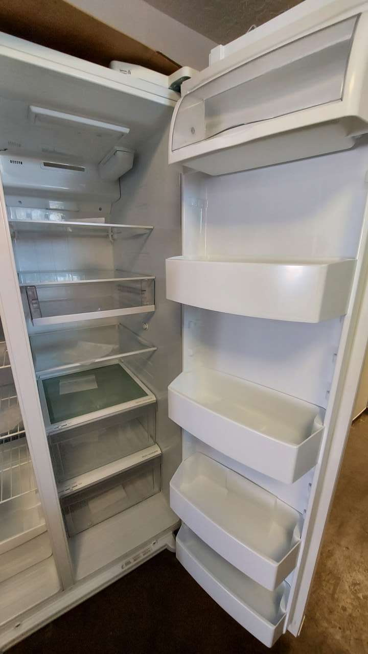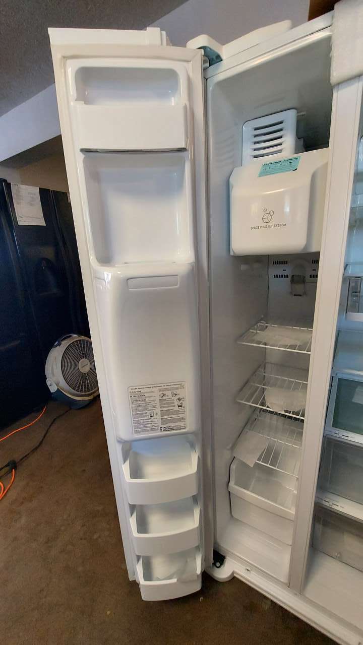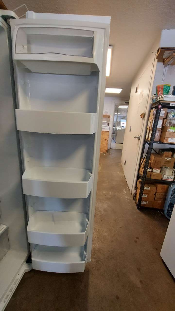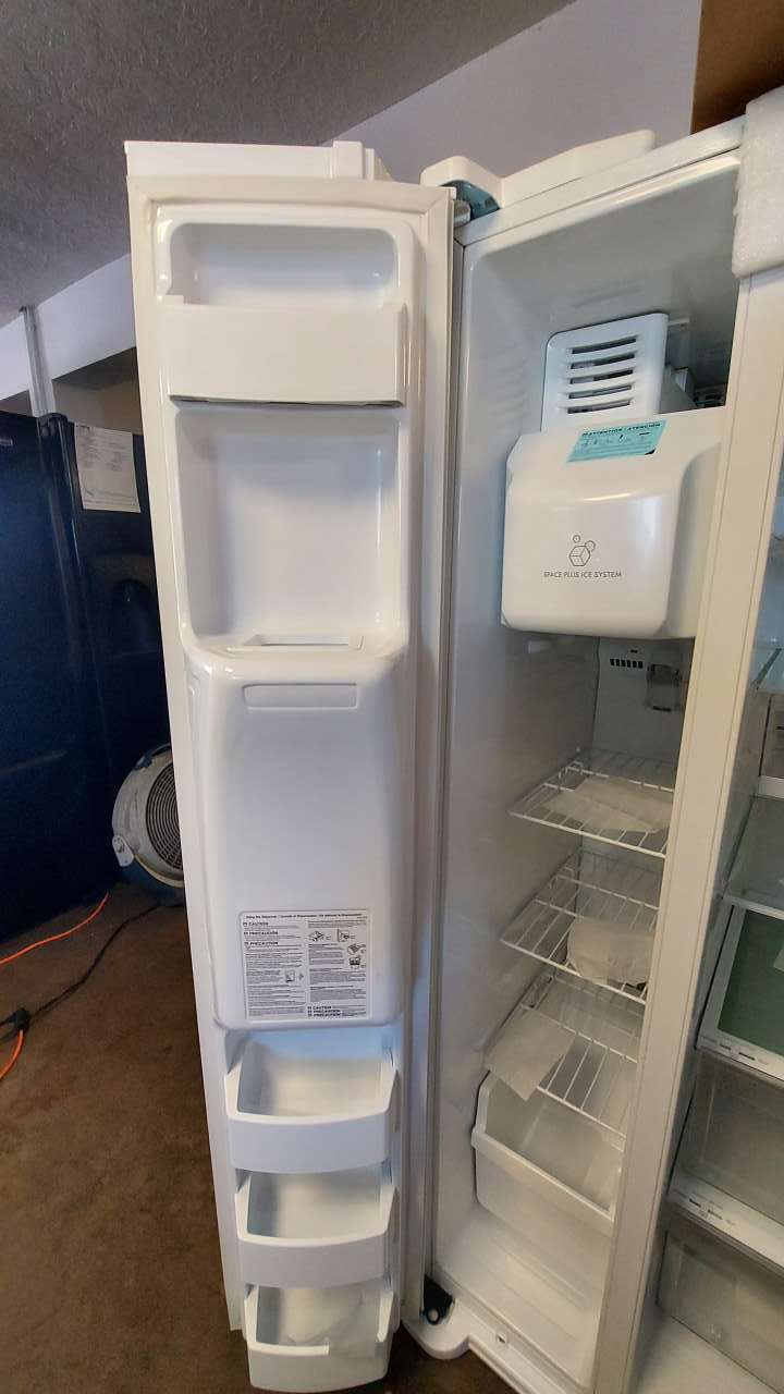 This unit has been tested and works. It has been cleaned inside and out and is ready to be delivered to your home. This unit comes with filtered water and ice. Inside the refrigerator are adjustable spill proof tempered glass shelving, 2 regular crisper drawers, a deli drawer, regular door amenities and gallon beverage door holders, and freezer and refrigerator temperature controls on the water dispenser. Inside the freezer is rack shelving, a pullout freezer drawer, a removable ice bucket and regular door amenities. This unit comes with a 90-day parts and labor warranty. This is from a 5-star business. If interested message me or come on into 5815 Lomas Boulevard Northeast. We accept cash, credit, debit cards and ACIMA no credit payment plan options. We hope to see you in soon!