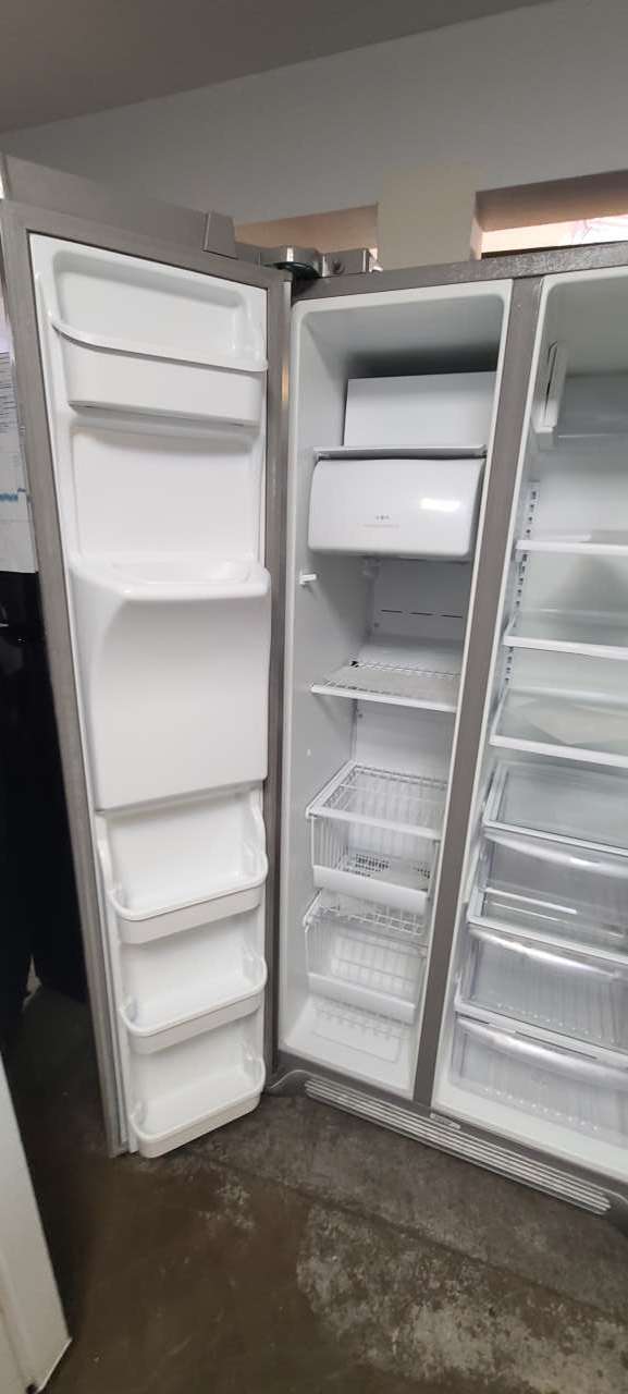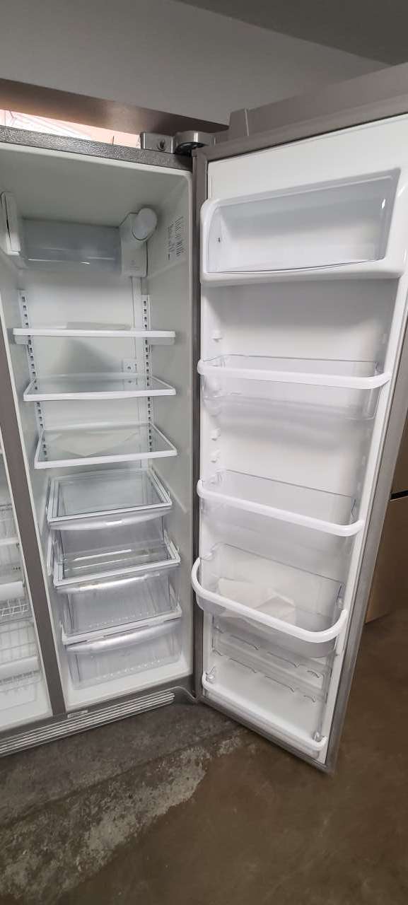 This unit has been tested and works. It has been cleaned inside and out and is ready to be delivered to your home. This unit comes with filtered water and ice. Inside the refrigerator are adjustable spill proof tempered glass shelving, 2 regular crisper drawers, a deli drawer, regular door amenities, refrigerator and freezer temperature controls on dispenser and gallon beverage door holders. Inside the freezer is adjustable rack shelving, 2 pullout freezer drawers, removable ice bucket and regular door amenities. This unit comes with a 90-day parts and labor warranty. This is from a 5-star business. If interested message me or come on into 5815 Lomas Boulevard Northeast. We accept cash, credit, debit cards and ACIMA no credit payment plan options. We hope to see you in soon!