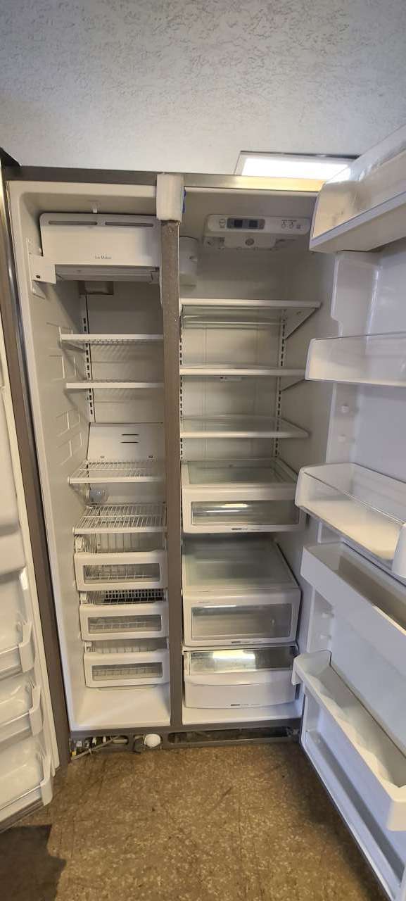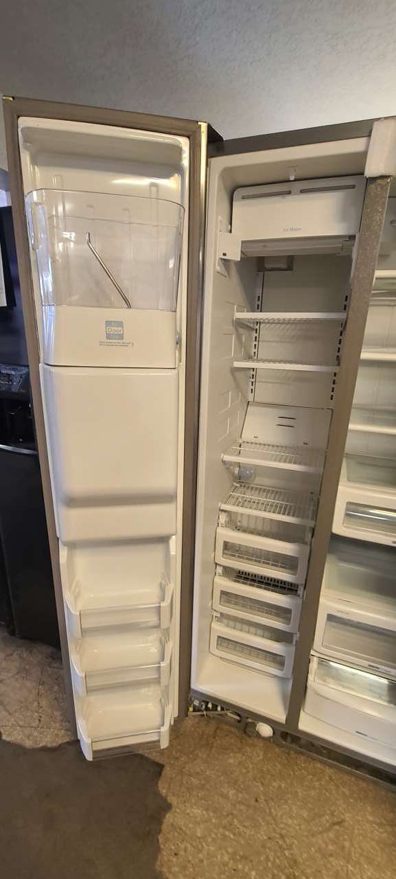 This unit has been tested and works. It has been cleaned inside and out and is ready to be delivered to your home. This unit comes with filtered water and ice. Inside the refrigerator are adjustable spill proof tempered glass shelving, 2 regular crisper drawers, a deli drawer, regular door amenities, refrigerator and freezer temperature controls and gallon beverage door holders. Inside the freezer is adjustable rack shelving, 3 pullout freezer drawers, removable ice bucket and regular door amenities. This unit comes with a 90-day parts and labor warranty. This is from a 5-star business. If interested message me or come on into 5815 Lomas Boulevard Northeast. We accept cash, credit, debit cards and ACIMA no credit payment plan options. We hope to see you in soon!