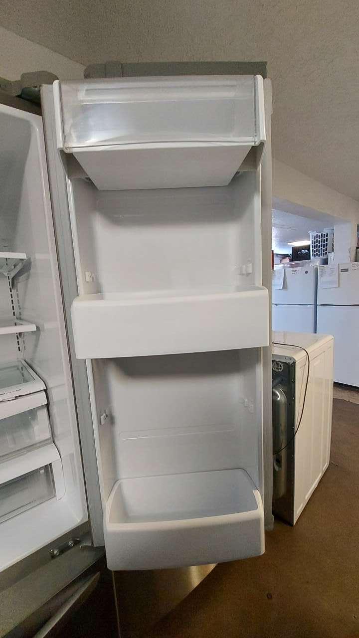 This unit has been tested and works. It has been cleaned inside and out and is ready to be delivered to your home. This unit comes with DUAL ICE MAKERS and filtered water. Inside the refrigerator are adjustable spill proof tempered glass shelving, 2 humidity controlled crisper drawers, a wide deli drawer, a removable ice bucket, regular door amenities and gallon beverage door holders. Inside the freezer is a pullout drawer with removable ice bucket and a bottom freezer drawer with adjustable divider. This unit comes with a 90-day parts and labor warranty. This is from a 5-star business. If interested message me or come on into 5815 Lomas Boulevard Northeast. We accept cash, credit, debit cards and ACIMA no credit payment plan options. We hope to see you in soon!