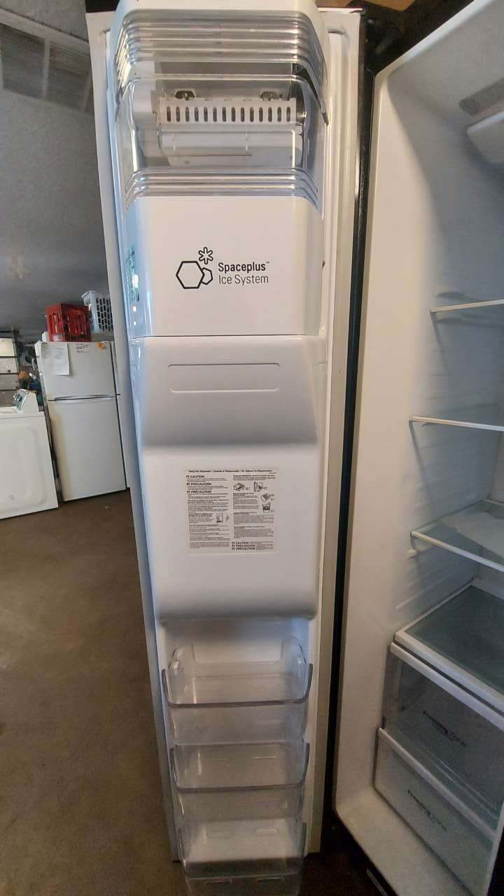 This unit has been tested and works. It has been cleaned inside and out and is ready to be delivered to your home. This unit has filtered water and ice. Inside the refrigerator are adjustable spill proof tempered glass shelving, 2 regular crisper drawers, regular door amenities and gallon beverage door holders, and freezer and refrigerator temperature controls on dispenser. Inside the freezer is tempered glass shelving, 2 pullout freezer drawers, a removable ice bucket and regular door amenities. This unit comes with a 90-day parts and labor warranty. This is from a 5-star business. If interested message me or come on into 5815 Lomas Boulevard Northeast. We accept cash, credit, debit cards and ACIMA no credit payment plan options. We hope to see you in soon!
