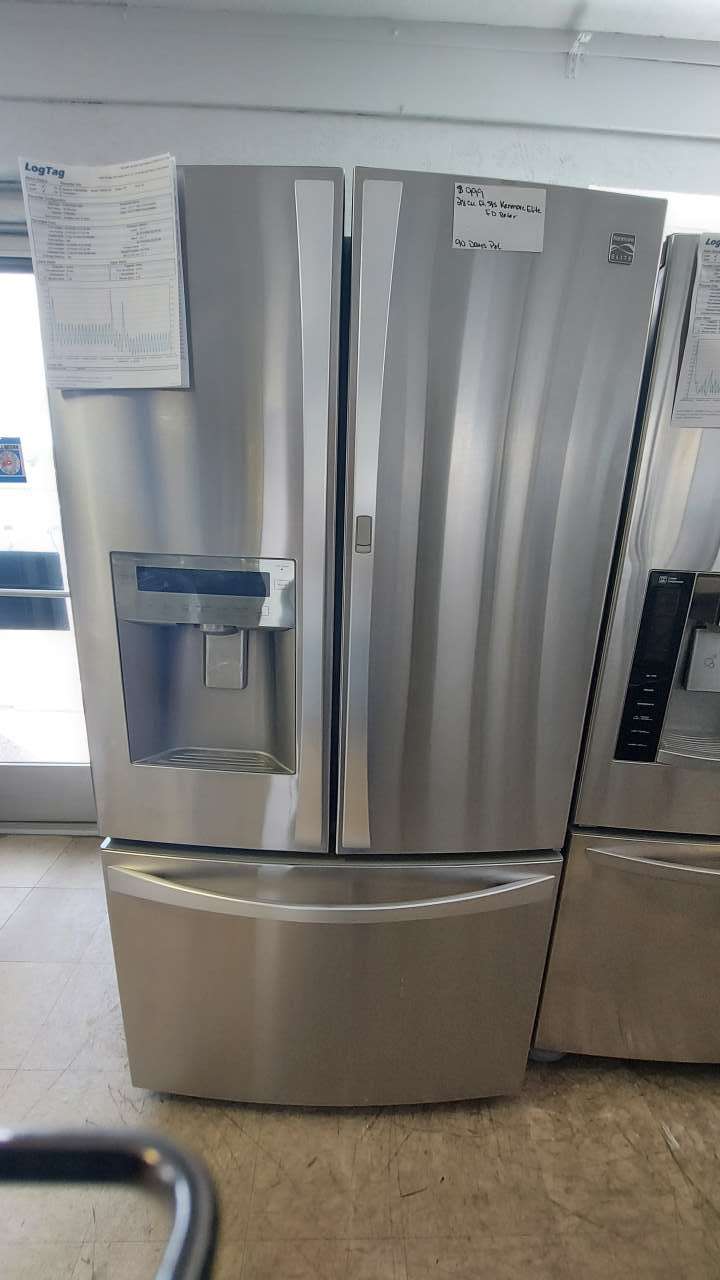 This unit has been tested and works. It has been cleaned inside and out and is ready to be delivered to your home. This unit comes with filtered water and ice. Inside the refrigerator are adjustable spill proof tempered glass shelving, an airtight crisper drawer, a humidity controlled crisper drawer, a wide deli drawer, a slim in door removable ice bucket, regular door amenities and gallon beverage door holders. Inside the freezer is a pullout drawer, a middle pullout shelf and a bottom freezer drawer with adjustable divider. This unit comes with a 90-day parts and labor warranty. This is from a 5-star business. If interested message me or come on into 5815 Lomas Boulevard Northeast. We accept cash, credit, debit cards and ACIMA no credit payment plan options. We hope to see you in soon!