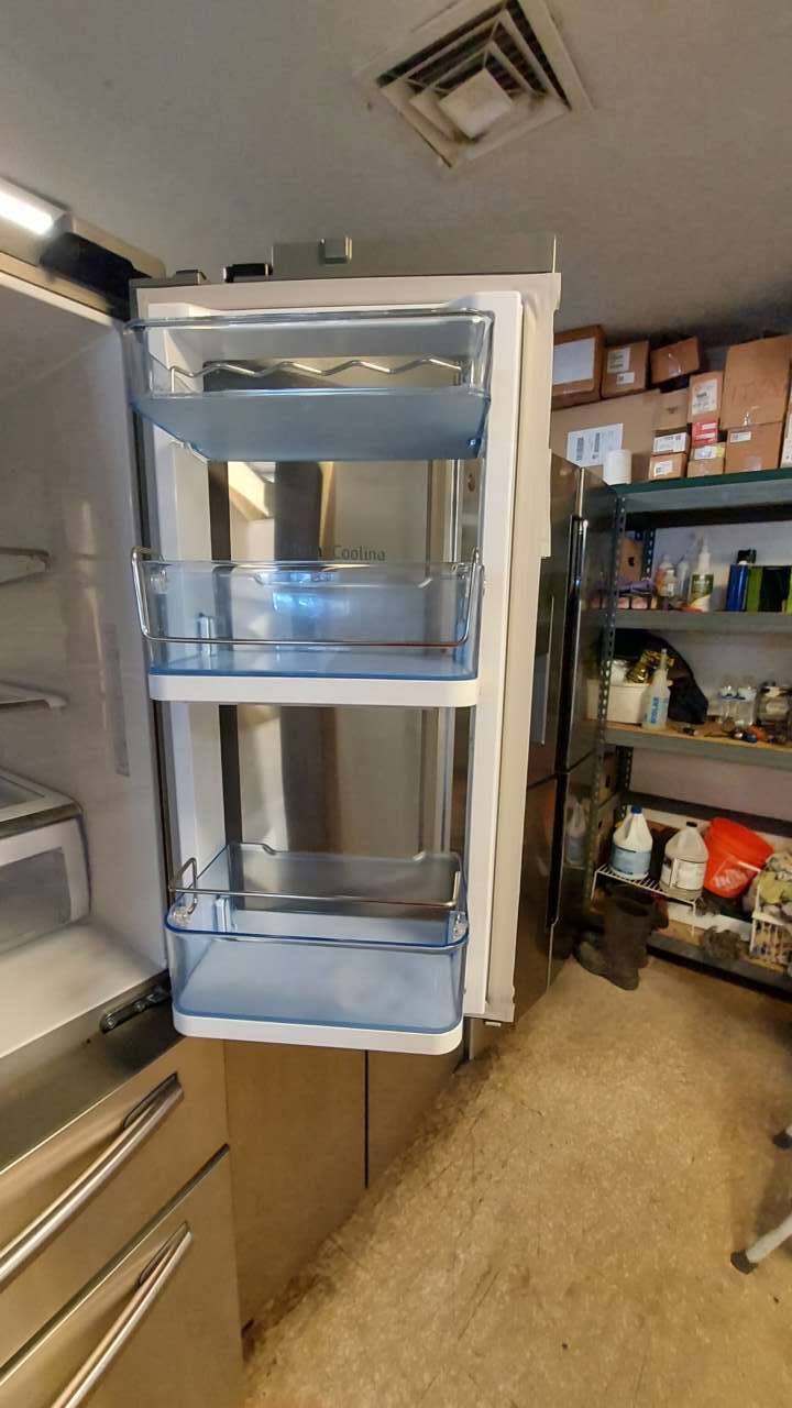 This unit has been cleaned inside and out and is ready to be delivered to your home.This unit comes with filtered water and ice. Inside the refrigerator is tempered glass shelving shelving, a space saving shelf, gallon beverage door holders, regular door amenities, 2 humidity controlled crisper drawers, a flex zone drawer can be used for snacks, drinks, produce or deli and a removable ice bucket. Inside the freezer is a pullout drawer and a bottom drawer with divider. This unit comes with a 90 day parts and labor warranty. We accept cash, credit, debit cards and ACIMA no credit payment plan options. We hope to see you in soon!