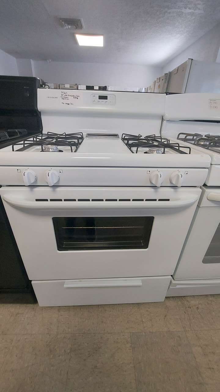 This unit has been tested and works. It has been cleaned inside and out and is ready to be delivered to your home. This unit comes with 4 Gas burners. The digital settings include timer and clock. The oven settings include, broil, and bake. This unit comes with a 90-day parts and labor warranty from a 5-star business. If interested message me or come on into 5815 Lomas Boulevard Northeast. We accept cash, credit, and debit cards and ACIMA no credit payment plan options. We hope to see you in soon!