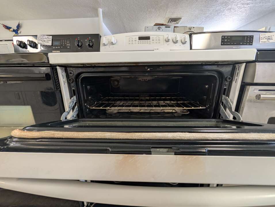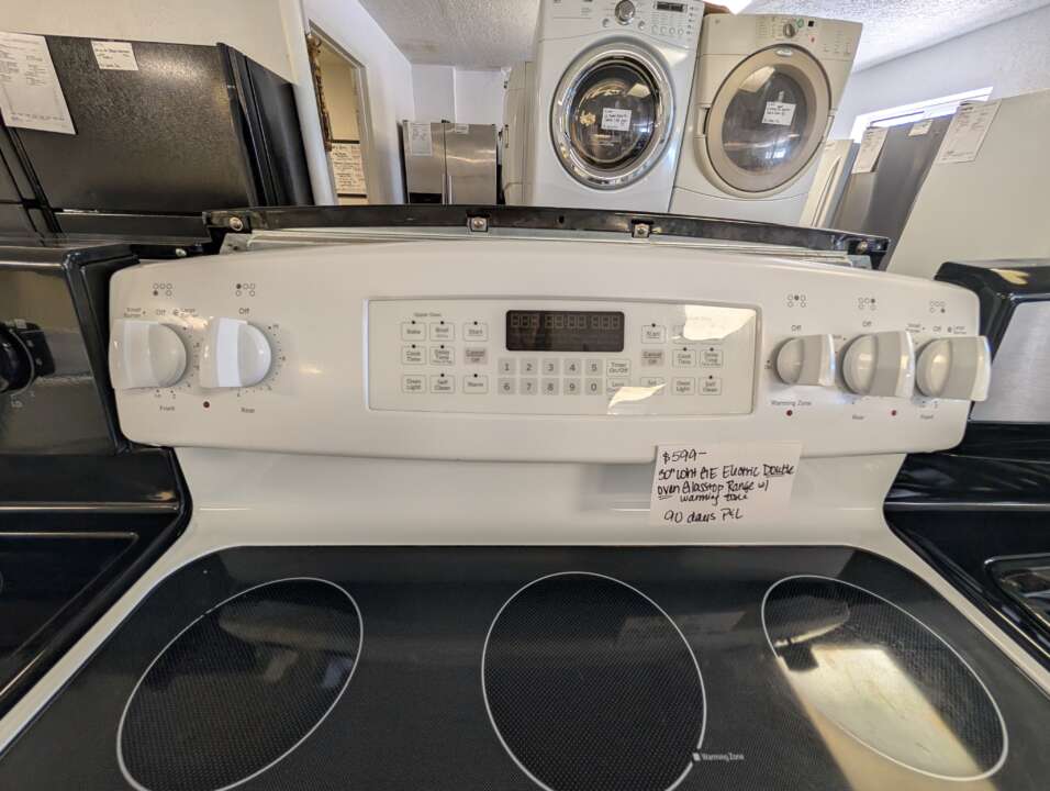 This unit has been tested and works. It has been cleaned inside and out and is ready to be delivered to your home. This unit is a double oven and comes with 4 glasstop burners, warming zone and upper/lower oven options, and is self-cleaning. The digital settings include timer, oven light and clock. The upper oven settings include clean, warm, cook time, delay time, bake and broil. The lower oven settings includes bake, broil, clean, cook time and delay time. This unit comes with a 90-day parts and labor warranty from a 5-star business. If interested message me or come on into 5815 Lomas Boulevard Northeast. We accept cash, credit, debit cards and ACIMA no credit payment plan options. We hope to see you in soon!