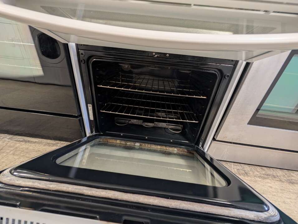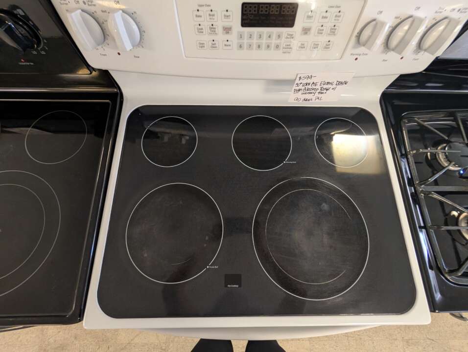 30″ White GE Electric Glass Top Double Oven Range