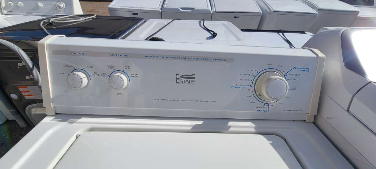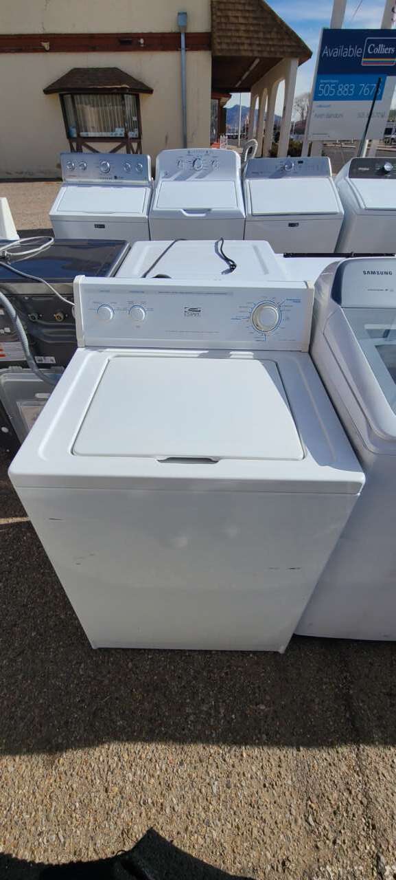 This unit has been tested and works. It has been cleaned inside and out and is ready to be delivered to your home. This unit comes with 7 washing cycles, 4 wash and rinse temperatures, 4 load sizes, perm press, normal, and gentle wash options, and a pull to start/push to stop knob. This unit comes with a 90-day parts and labor warranty from a 5-star business. If interested message me or come on into 5815 Lomas Boulevard Northeast. We accept cash, credit, debit cards and ACIMA no credit payment plan options. We hope to see you in soon!