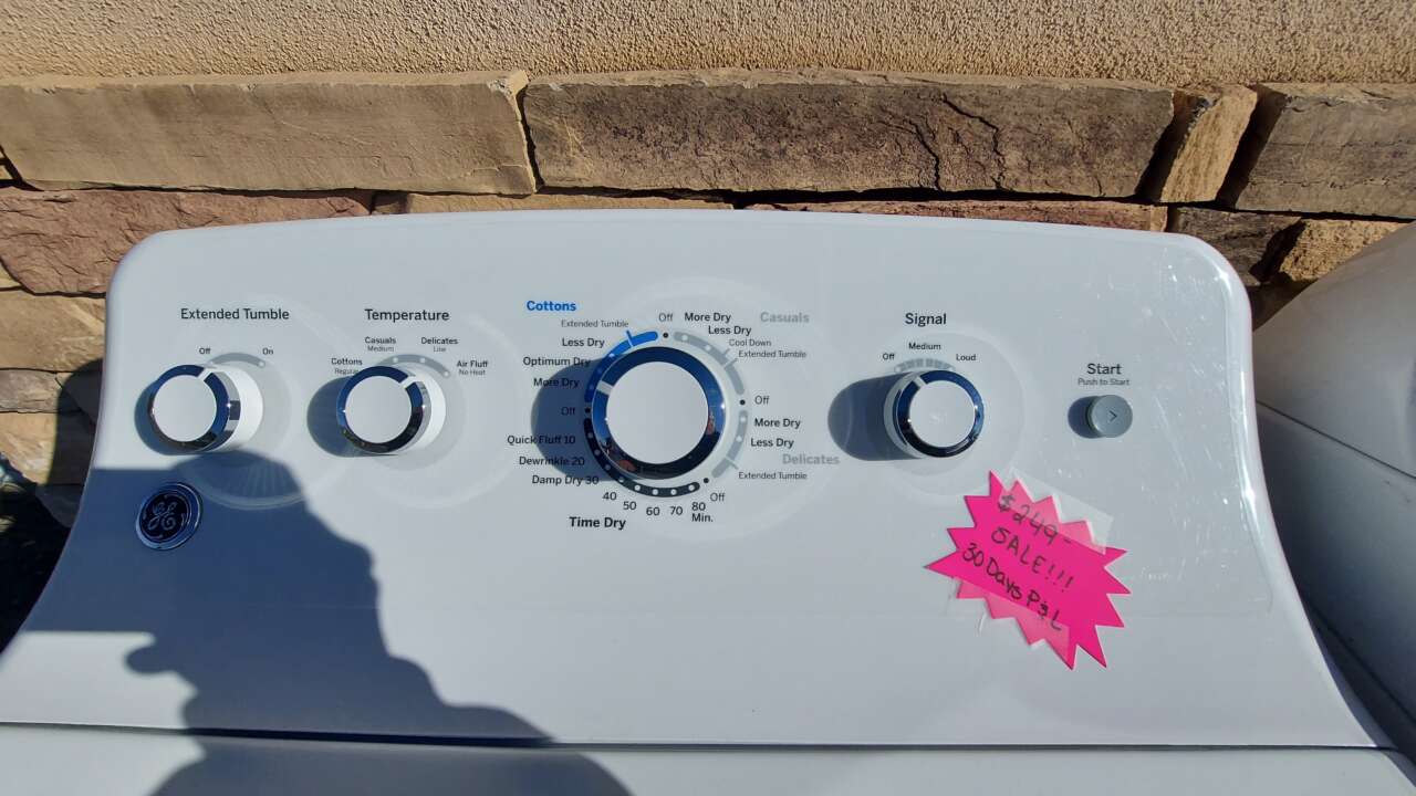 This unit has been cleaned inside and out and is ready to be delivered to your home. This unit comes with, 8 drying cycles, 4 drying temperatures, quick fluff, cottons, time dry, extended tumble, end of cycle signal, and a push to start button. This unit comes with a 90 days parts & labor warranty on the regular price, or a 30-day parts and labor warranty on the sale price from a 5-star business. If you’re interested message me or come into 5815 Lomas Blvd NE. We accept cash, credit, debit cards and ACIMA no credit payment plan options. We hope to see you in soon!