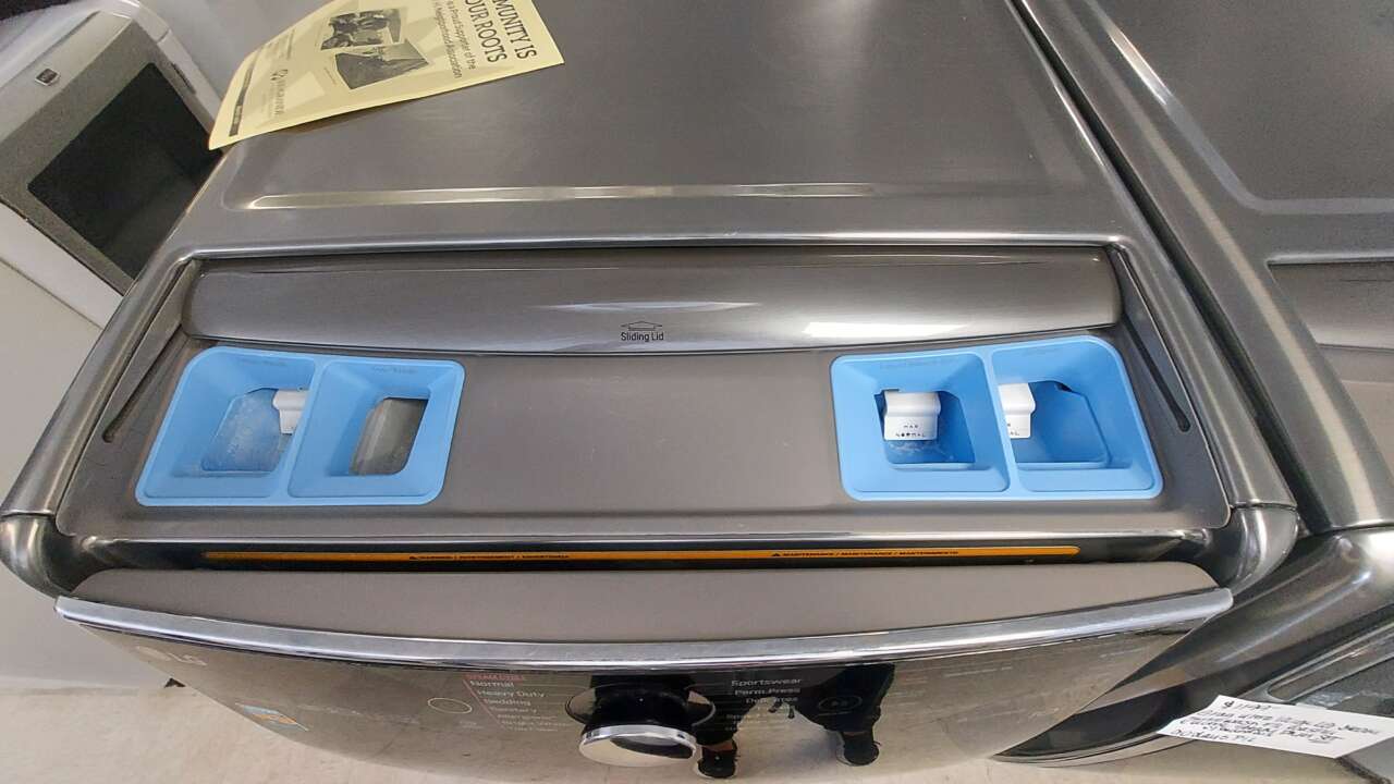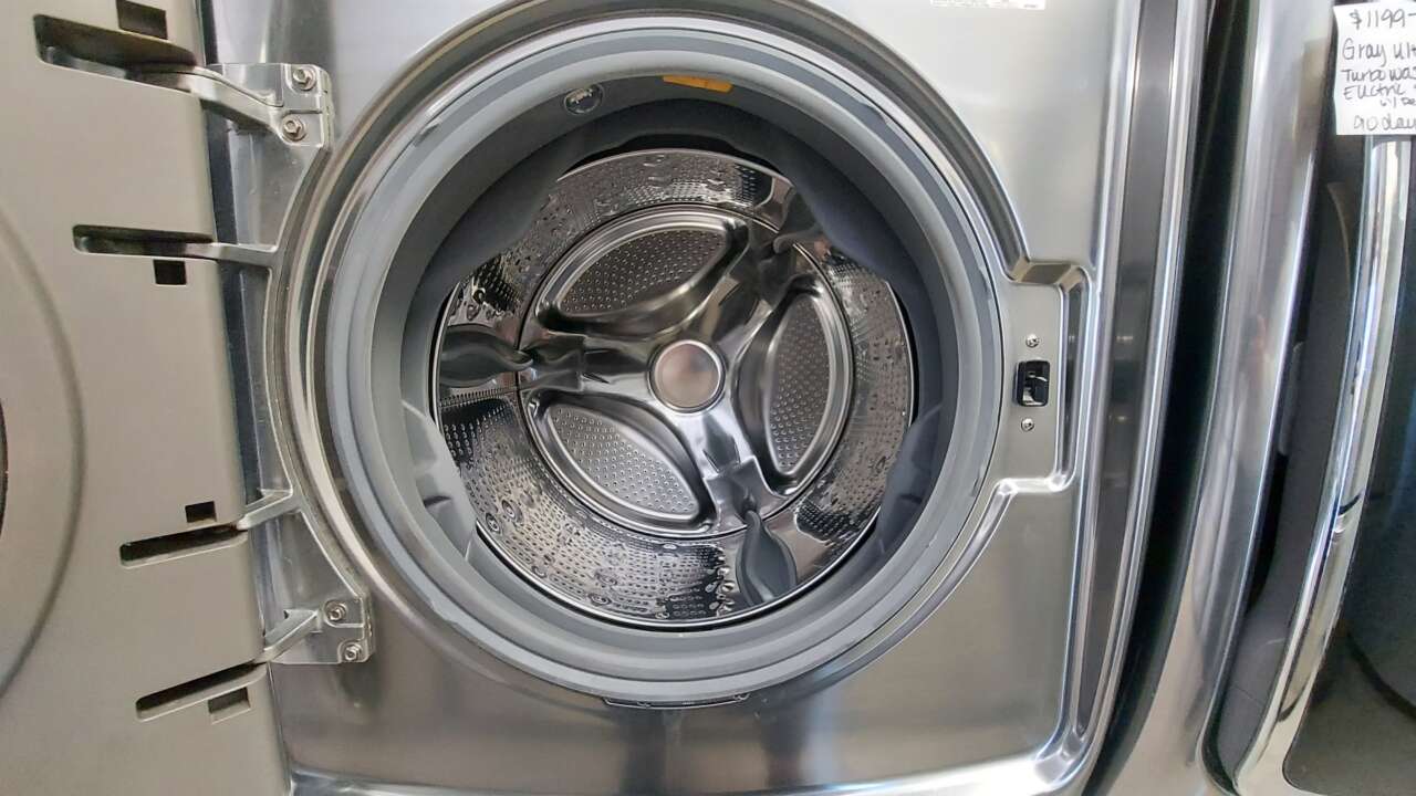 Gray Ultra Large LG Steam Turbo Wash Front Load Washer/Electric Dryer Set w/Pedestals
