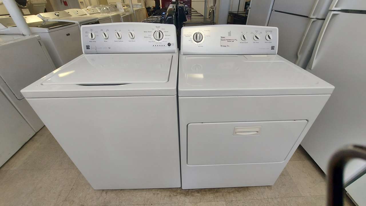 This set has been tested and works. Both the washer and dryer have been cleaned inside and out and are ready to be delivered to your home. The washer comes with 5 wash and rinse temperatures, 11 washing cycles, stain boost, fabric softener option, extra rinse, clean washer, heavy duty and a push to start/pause button. The dryer comes with 5 drying cycles, 3 drying temperatures, wrinkle guard, end of cycle signal and a push to start knob. This set comes with a 90-day parts and labor warranty from a 5-star business. If interested message me or come on into 5815 Lomas Boulevard Northeast. We accept cash, credit, debit cards and ACIMA no credit payment plan options. We hope to see you in soon!