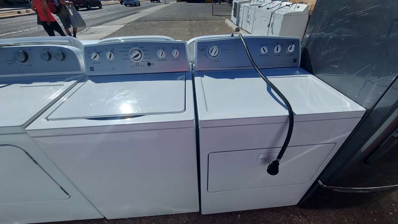This set has been tested and works and has been cleaned inside and out and is ready to be delivered to your home. The washer comes with 12 washing cycles, 5 wash and rinse temperatures, extra rinse, fabric softener, stain boost, cycles include clean washer, soak, deep wash, delicates, and a hold to start/pause and cancel button. The dryer comes with 5 drying cycles, 3 drying temperatures, auto moisture sensing , air and timed dry, wrinkle guard, cycle signal, and a push to start button. This set comes with a 60-day parts and labor warranty from a 5-star business.We accept cash, credit, debit cards and ACIMA no credit payment plan options. We hope to see you in soon!