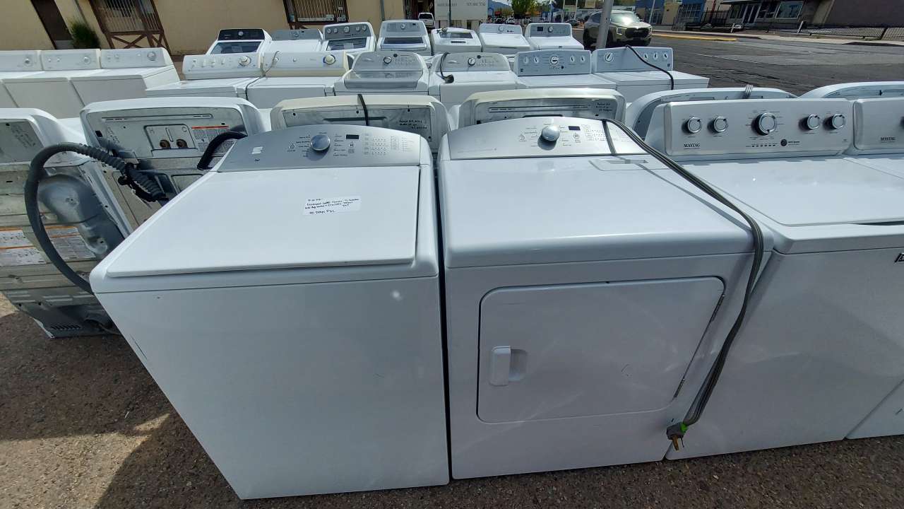 This set has been tested and works. Both the washer and dryer have been cleaned inside and out and are ready to be delivered to your home. The washer comes with 11 washing cycles, 5 wash and rinse temperatures, 5 soil levels, 5 spin speeds, cycle signal, prewash, deep fill, two rinses, fabric softener, stain boost, delay wash, estimated time remaining, clean washer, soak, and a push to start/pause and power button. The dryer comes with 9 drying cycles, 5 drying temperatures, 5 dry levels, wrinkle guard, damp signal, time adjust, sanitize, end of cycle signal and a push to start/pause and power button. This set comes with a 90-day parts and labor warranty from a 5-star business. If interested message me or come on into 5815 Lomas Boulevard Northeast. We accept cash, credit, debit cards and ACIMA no credit payment plan options. 90-dayWe hope to see you in soon!