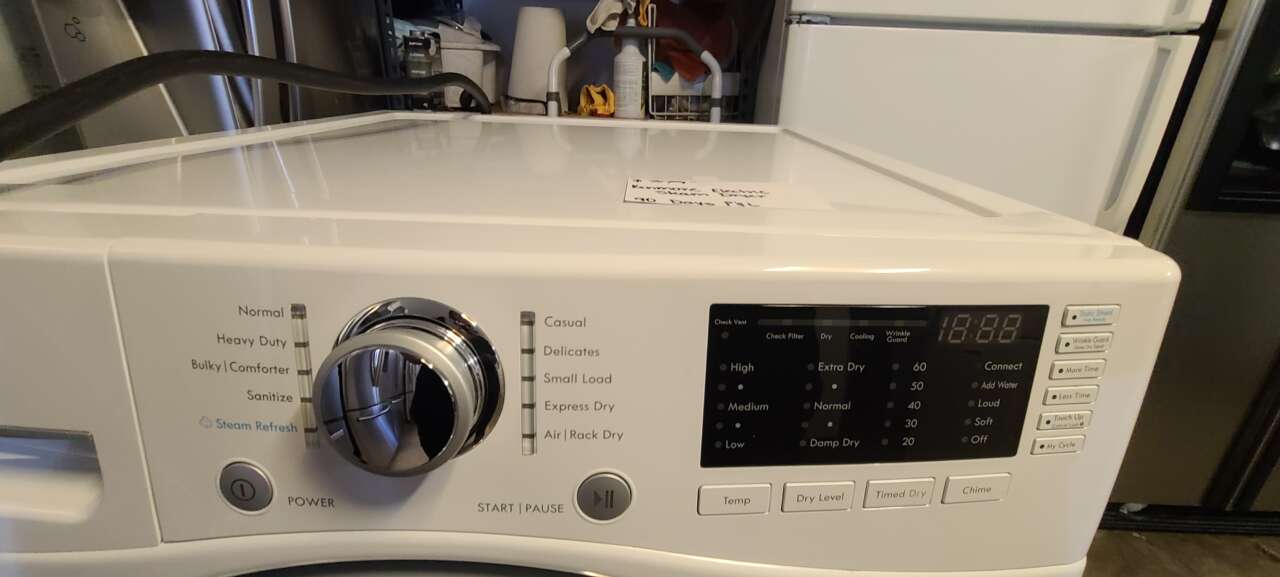 This unit has been tested and works perfectly. It has been cleaned inside and out and is ready to be delivered to your home. This unit comes with 10 drying cycles, 5 drying temperatures, 5 dry levels, sanitize, express dry, delicates, steam refresh, wrinkle guard, damp dry signal, static shield, estimated time remaining, end of cycle signal and a push to start button. This unit comes with a 90-day parts and labor warranty for the regular peice or a 30-day parts and labor warranty for the sale price from a 5-star business. If interested message me or come on into 5815 Lomas Boulevard Northeast. We accept cash, credit, and debit cards. We hope to see you in soon!