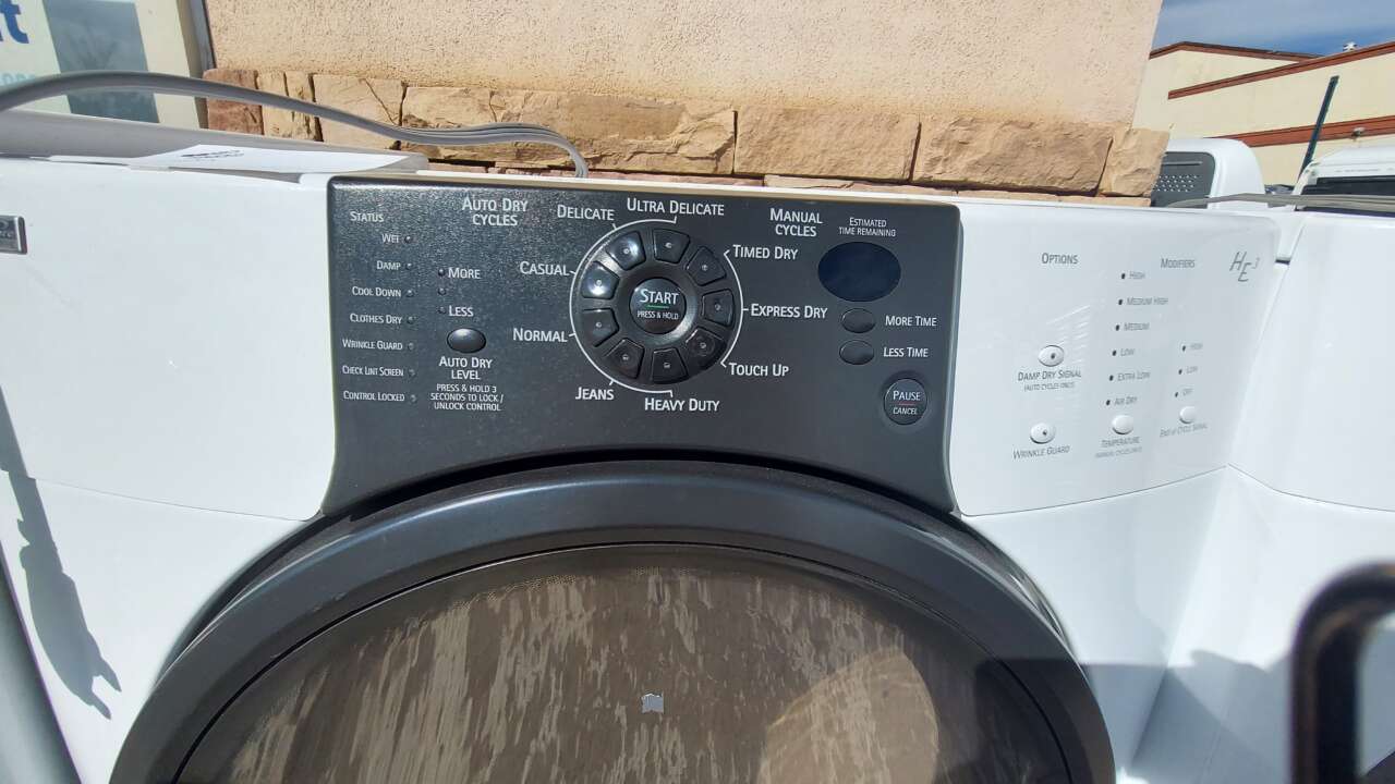 This unit has been tested and works and has been cleaned inside and out and is ready to be delivered to your home. This unit comes with, 9 drying cycles, 6 drying temperatures, 3 auto dry levels, wrinkle guard, damp dry signal, end of cycle signal, estimated time remaining and a hold to start button. This unit comes with a 90 or 30 day parts and labor warranty from a 5-star business. We accept cash, credit, debit cards and ACIMA no credit payment plan options. We hope to see you in soon!