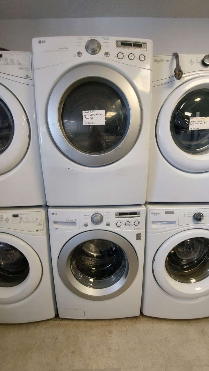 This set has been tested and works. Both the washer and dryer have been cleaned inside and out and are ready to be delivered to your home. The washer comes with 7 washing cycles, 5 wash and rinse temperatures, 3 spin speeds, light to heavy soil levels, extra rinse option, pre wash, delay wash, water plus, estimated time remaining, speed wash and a push to start, and power button. The dryer comes with 7 drying cycles, low to high drying temperatures, 3 dry levels, end of cycle signal, wrinkle care, damp dry signal, anti bacterial, estimated time remaining and a push to start and power button. This set comes with a 90-day parts and labor warranty from a 5-star business. If interested message me or come on into 5815 Lomas Boulevard Northeast. We accept cash, credit, debit cards and ACIMA no credit payment plan options. We hope to see you in soon!