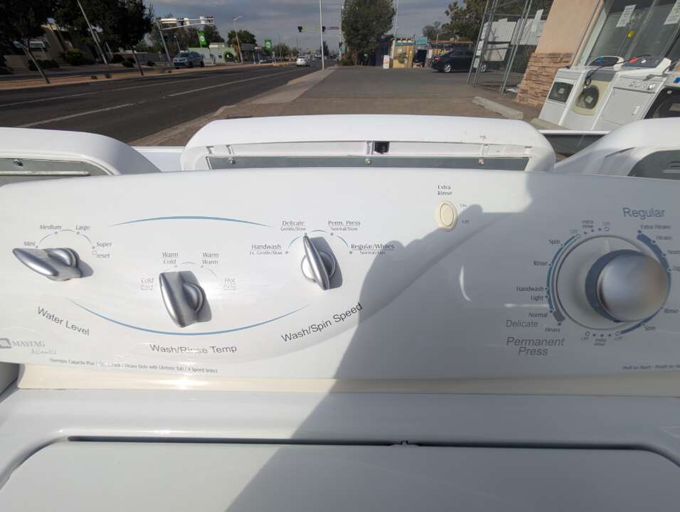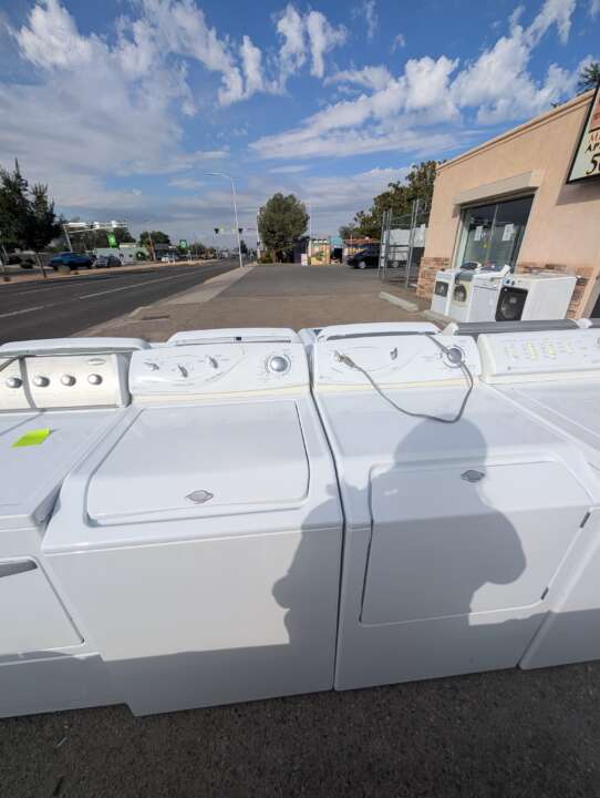 This set has been tested and works. Both the washer and dryer have been cleaned inside and out and are ready to be delivered to your home. The washer comes with 4 wash and rinse temperatures, 18 washing cycles, 4 water levels, 4 spin speeds, extra rinse, delicate, hand wash, and a pull to start/push to stop knob. The dryer comes with 8 drying cycles, 4 drying temperatures, time dry/air fluff, end of cycle signal, and a pull to start/ push to stop knob. This set comes with a 90-day parts and labor warranty from a 5-star business. If interested message me or come on into 5815 Lomas Boulevard Northeast. We accept cash, credit, debit cards and ACIMA no credit payment plan options. We hope to see you in soon!