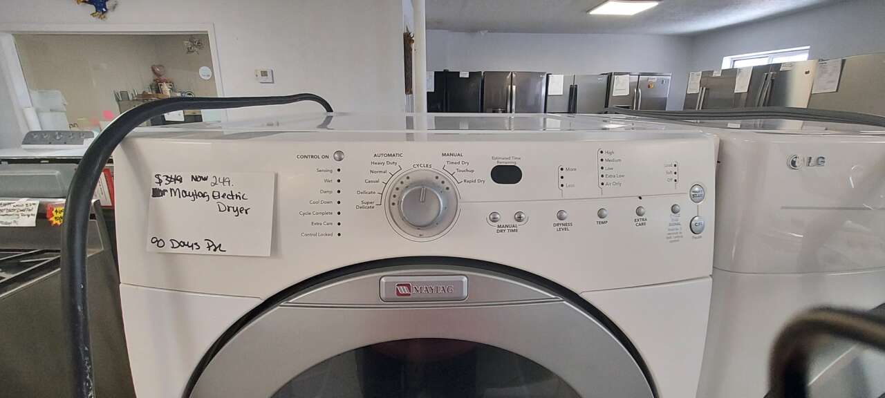 This unit has been tested and works. It has been cleaned inside and out and is ready to be delivered to your home. This unit comes with 8 drying cycles, 5 drying temperatures, 3 dryness levels, manual dry time, end of cycle signal, hold to start button and estimated time remaining. This unit comes with a 90 days parts & labor warranty on the regular price, or a 30-day parts and labor warranty on the sale price from a 5-star business. If interested message me or come on into 5815 Lomas Boulevard Northeast. We accept cash, credit, and debit cards and ACIMA no credit payment plan options. We hope to see you in soon!