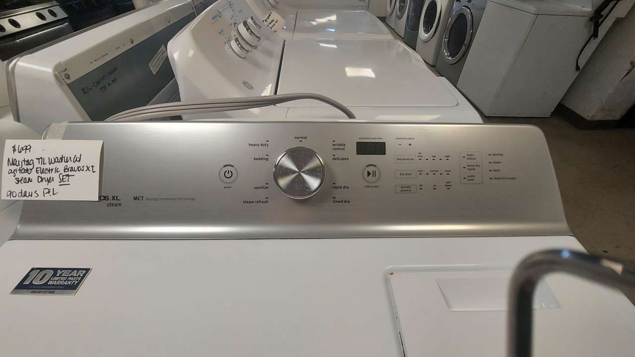 Maytag Top Load Washer/Electric Bravos XL Steam Dryer Set