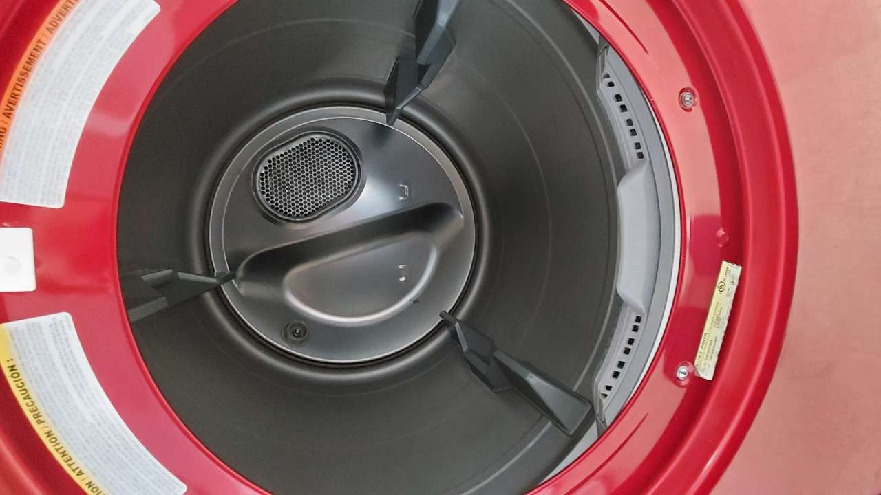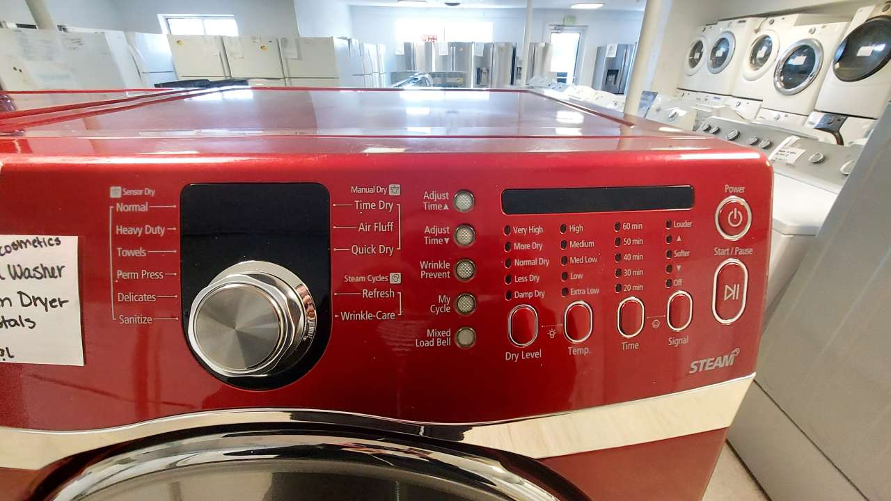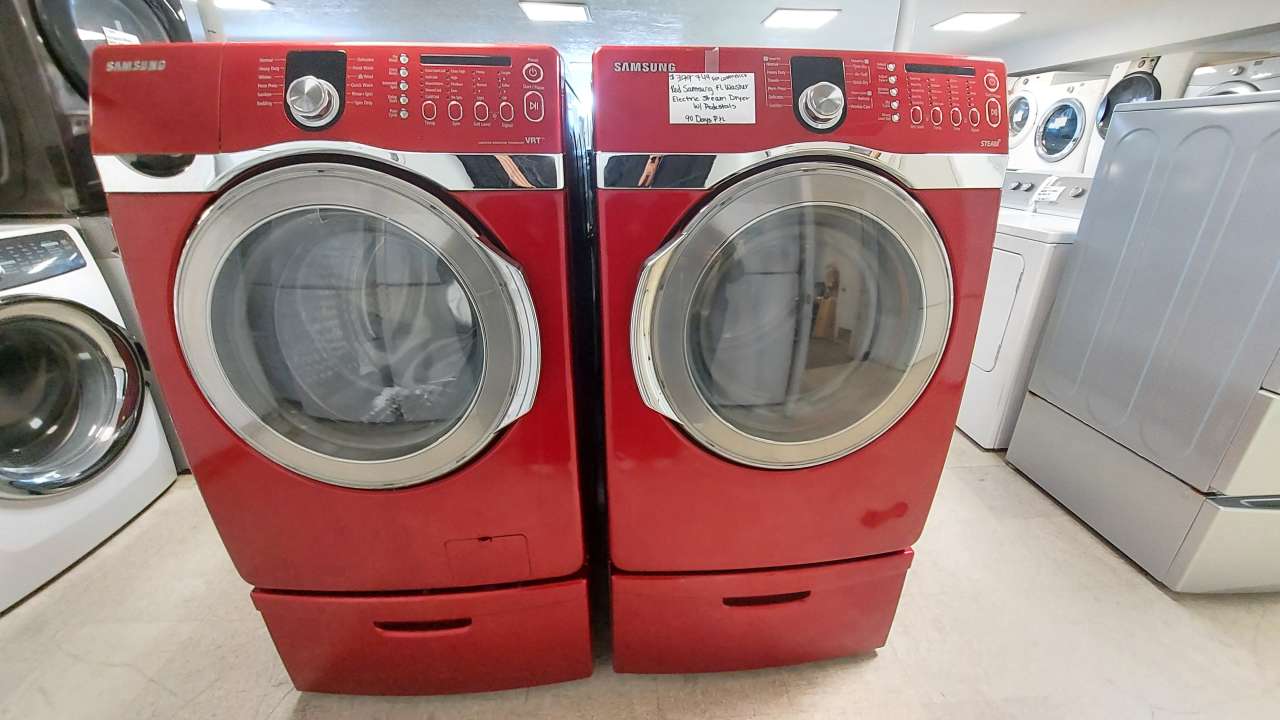 Red Samsung Front Load Washer Electric Steam Dryer With Pedestals