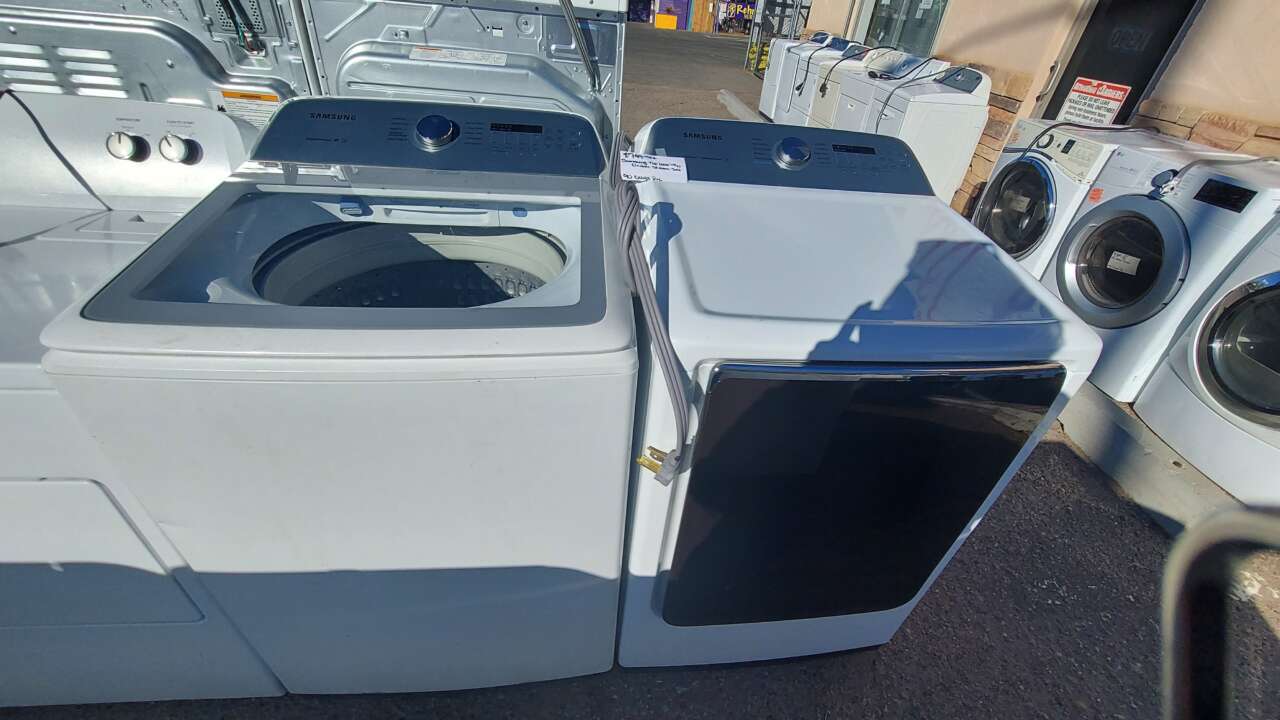 This set has been tested and works and has been cleaned inside and out and is ready to be delivered to your home. The washer comes with 10 washing cycles, 5 wash and rinse temperatures, 5 soil levels, 5 spin speeds, 5 rinse options, presoak, delay end, fabric softener, deep fill, smart care, quick wash, estimated time remaining, and a hold to start & power button. The dryer is a STEAM dryer and comes with 10 drying cycles, 5 drying temperatures, 5 dry levels, time dry, wrinkle prevent, eco dry, damp alert, drum light, steam sanitize, and a hold to start and power button. This set comes with a 90-day parts and labor warranty from a 5-star business. If interested message me or come on into 5815 Lomas Boulevard Northeast. We accept cash, credit, debit cards and ACIMA no credit payment plan options. We hope to see you in soon!