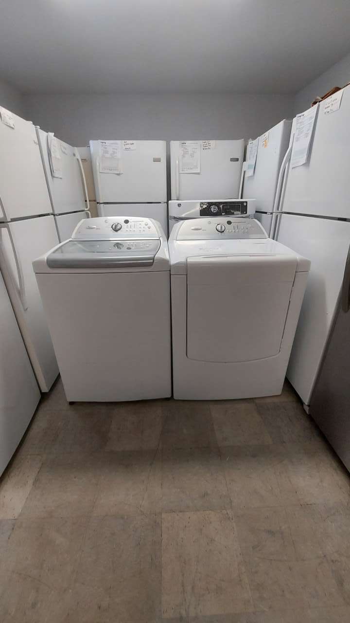 This set has been tested and works. Both the washer and dryer have been cleaned inside and out and are ready to be delivered to your home. The washer comes with, 5 wash and rinse temperatures, 14 washing cycles including clean washer, 4 spin speeds, 4 soil levels, delay start, extra rinse, deep clean. End of cycle signal, fabric softener option, estimated time remaining and a hold to start button. The dryer comes with 7 drying cycles, 5 drying temperatures, 4 dryness levels, wrinkle shield, estimated time remaining, end of cycle signal and a hold to start button. This set comes with a 90-day parts and labor warranty from a 5-star business. If interested message me or come on into 5815 Lomas Boulevard Northeast. We accept cash, credit, debit cards and ACIMA no credit payment plan options. We hope to see you in soon!