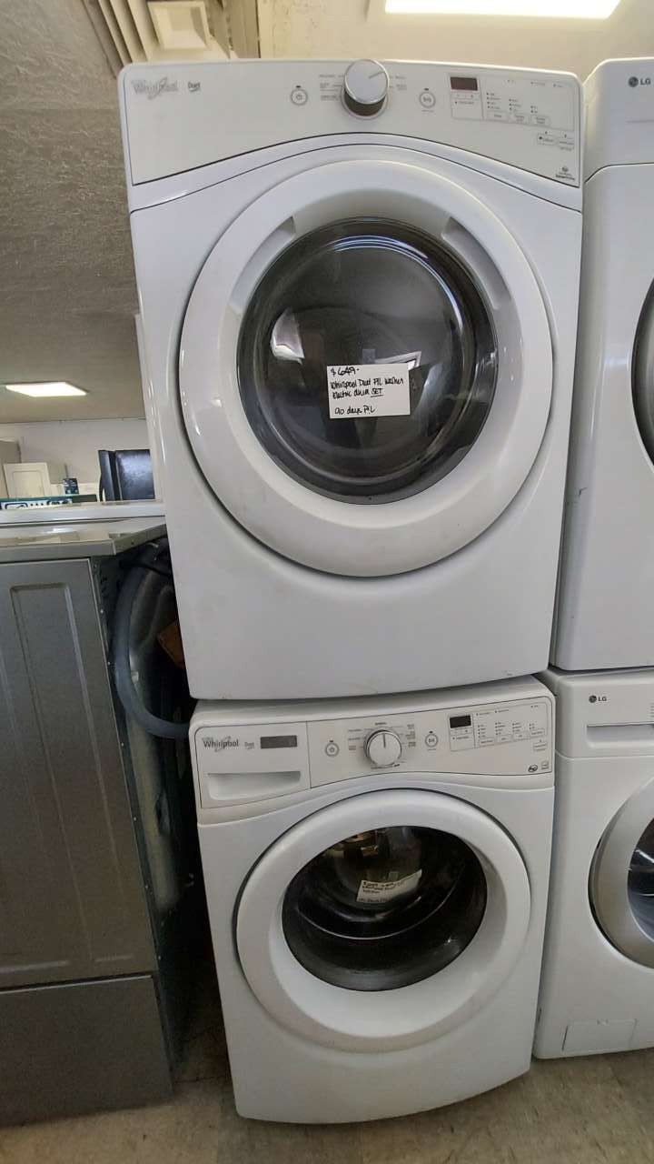 This set has been tested and works. Both the washer and dryer have been cleaned inside and out and are ready to be delivered to your home. The washer comes with, 4 wash and rinse temperatures, 7 washing cycles, 4 spin speeds, 3 soil levels, heavy duty, drain and spin, quick wash, delicates, sanitize, estimated time remaining, delay wash, end of cycle signal and a hold to start button. The dryer comes with 6 drying cycles, 4 drying temperatures, time dry, 3 dryness levels, wrinkle shield, estimated time remaining, damp dry signal, and a hold to start button. This set comes with a 90-day parts and labor warranty from a 5-star business. If interested message me or come on into 5815 Lomas Boulevard Northeast. We accept cash, credit, debit cards and ACIMA no credit payment plan options. We hope to see you in soon!
