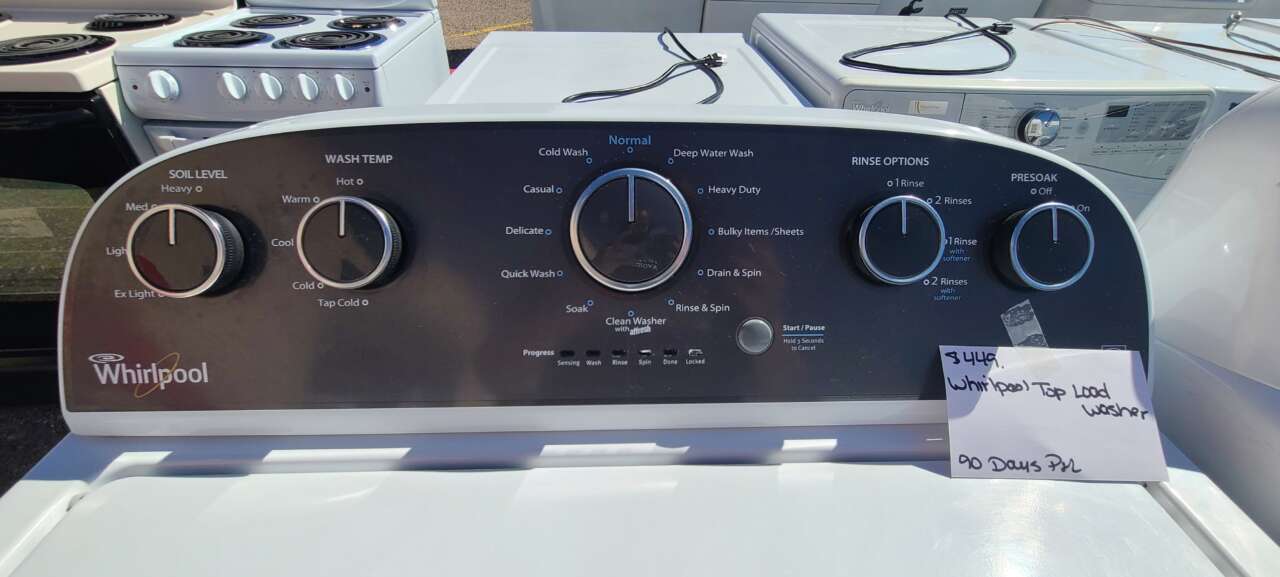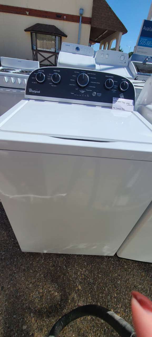 This unit has been tested and works. It has been cleaned inside and out and is ready to be delivered to your home. This unit comes with 12 washing cycles, 5 wash temperatures, 4 soil levels, presoak, normal, deep water wash, extra rinse and a push start/pause. This unit comes with a 90-day parts and labor warranty from a 5-star business. If interested message me or come on into 5815 Lomas Boulevard Northeast. We accept cash, credit, debit cards and ACIMA no credit payment plan options. We hope to see you in soon!
