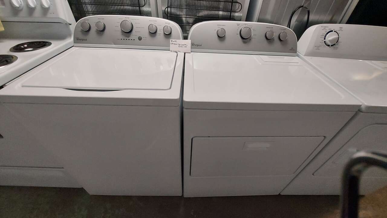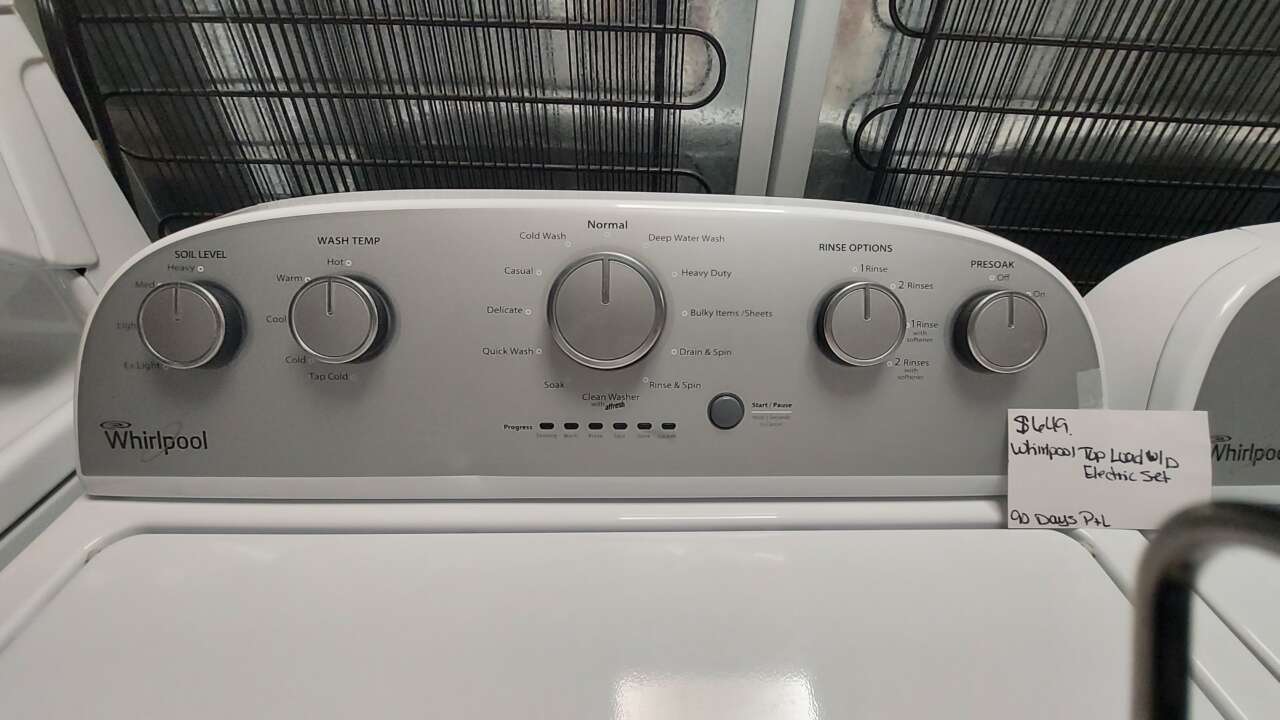 This set has been tested and works. Both the washer and dryer have been cleaned inside and out and are ready to be delivered to your home. The washer comes with 12 washing cycles including clean washer, 5 wash and rinse temperatures, 4 soil levels, extra rinse option, deep water wash, cold wash, quick wash, presoak and a push to start/pause button. The dryer comes with 6 drying cycles, 5 drying temperatures, damp dry cycle, time dry, wrinkle shield, end of cycle signal, and a push to start knob. This set comes with a 90-day parts and labor warranty from a 5-star business. If interested message me or come on into 5815 Lomas Boulevard Northeast. We accept cash, credit, debit cards and ACIMA no credit payment plan options. We hope to see you in soon!