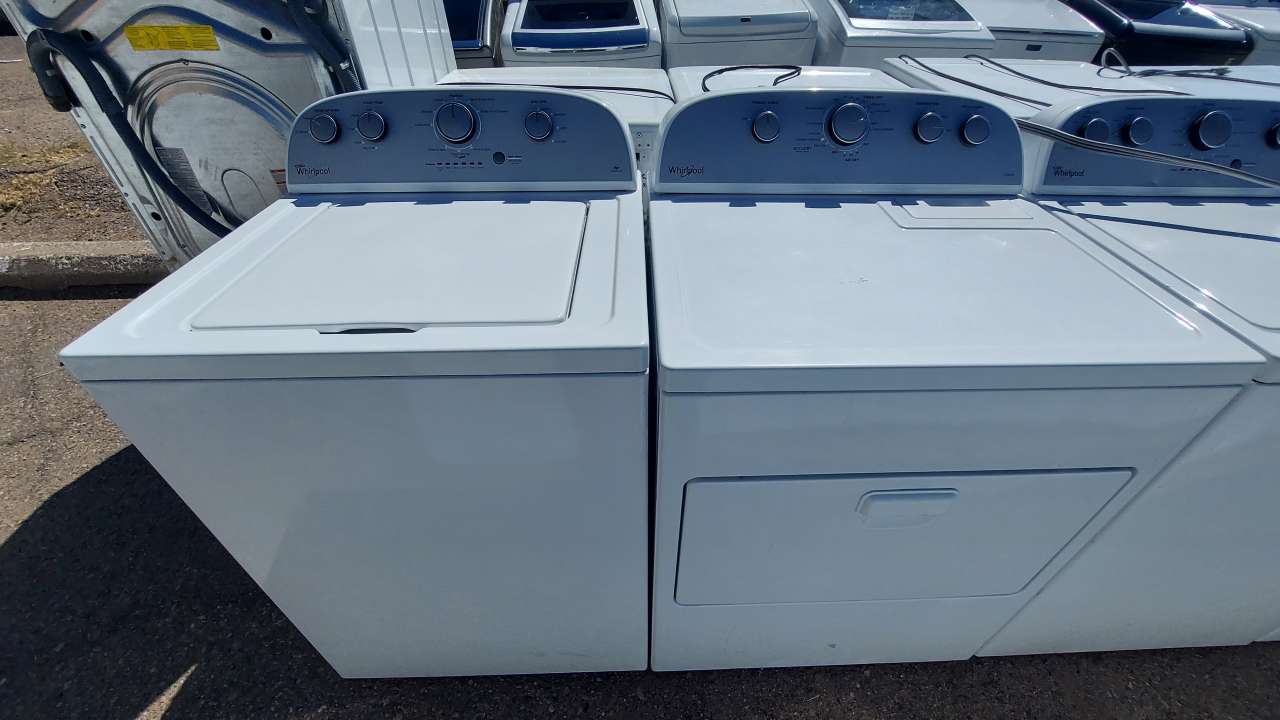 This set has been tested and works. Both the washer and dryer have been cleaned inside and out and are ready to be delivered to your home. The washer comes with 9 washing cycles including clean washer, 5 wash and rinse temperatures, 4 soil levels, extra rinse option, deep water wash, cold wash, soak, and a push to start/pause button. The dryer comes with 6 drying cycles, 3 drying temperatures, wrinkle shield, time dry, energy preferred, end of cycle signal, and a push to start knob. This set comes with a 90-day parts and labor warranty from a 5-star business. If interested message me or come on into 5815 Lomas Boulevard Northeast. We accept cash, credit, debit cards and ACIMA no credit payment plan options. We hope to see you in soon!